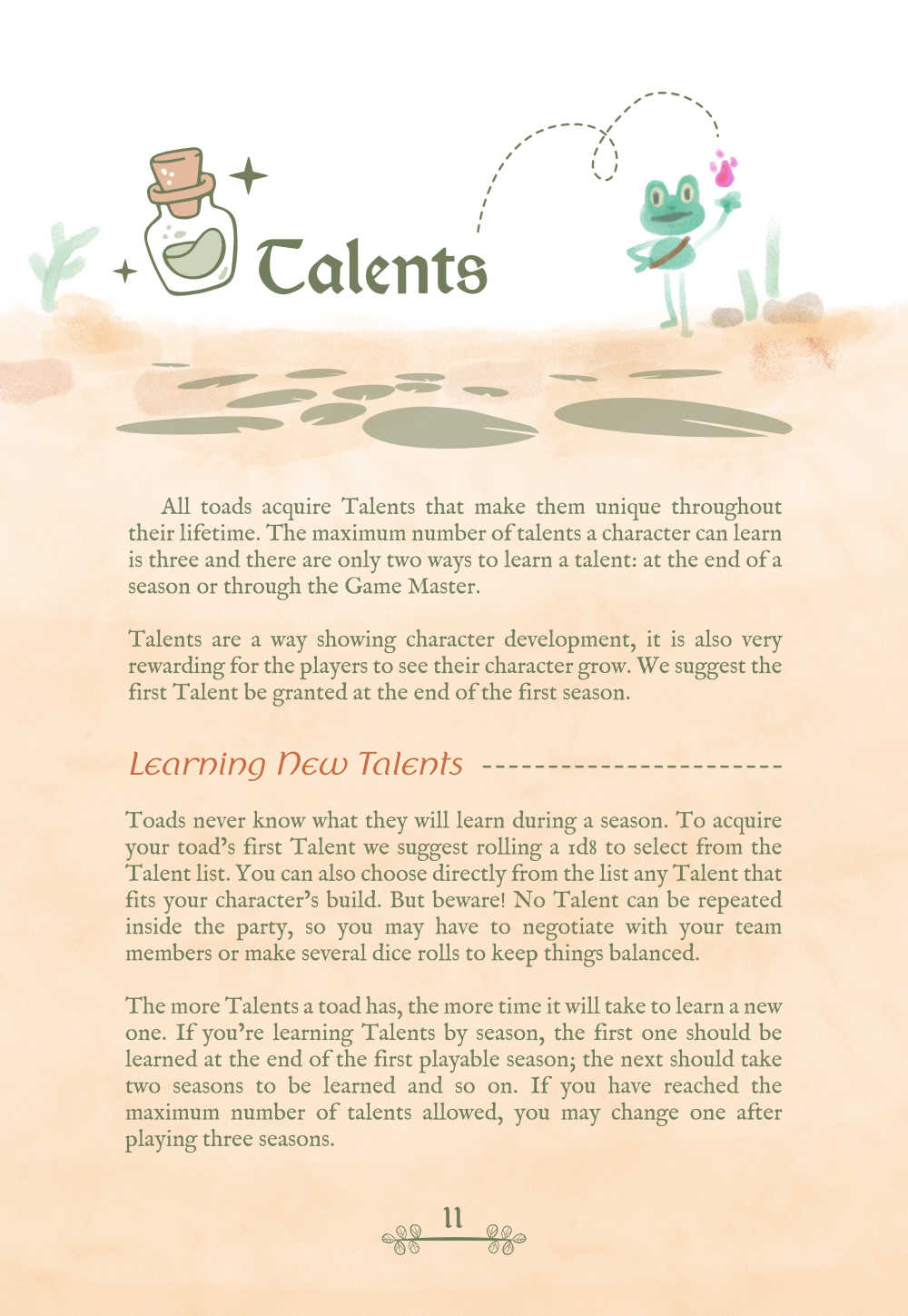 The Complete Guide its in development, set to be published on 2026, but you can enjoy the Quickstart's 28 pages of basic game rules downloading the following files to create your Adventuring Toad and immediatly throw your d4s. Besides, take a look at our Adventuring Seasons for even more challenges and memorable characters. If you have something to say, let us know in the comments: We promise the Great Crystal's mysteries will be revealed, if you have a brave heart and a little faith.